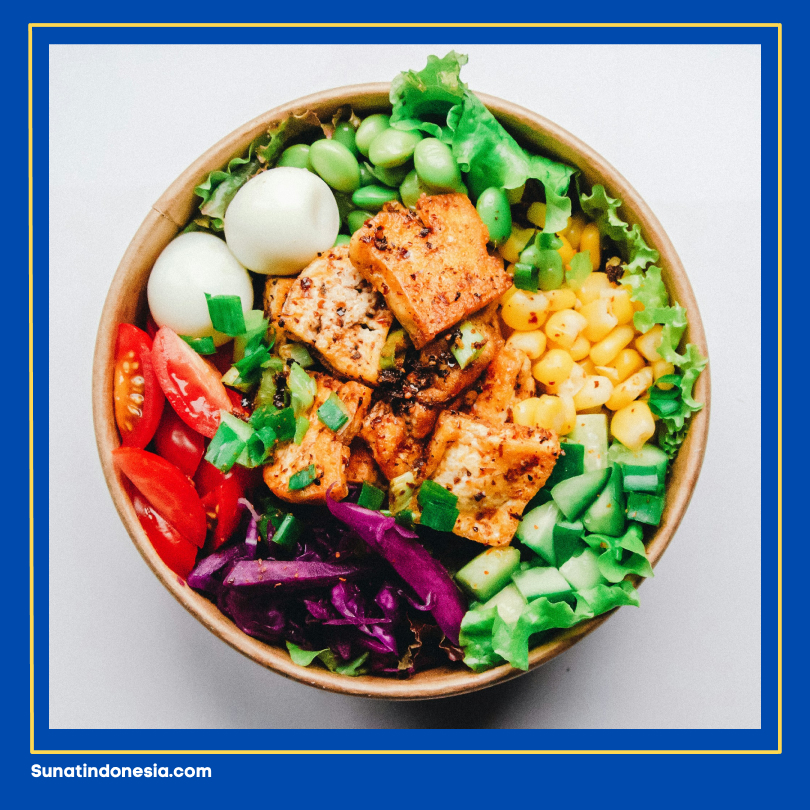 Konsumsi air putih minimal 8 gelas sehari juga penting untuk menjaga hidrasi tubuh. Pastikan setiap porsi makan mengandung protein, karbohidrat kompleks, serta sayur dan buah segar.